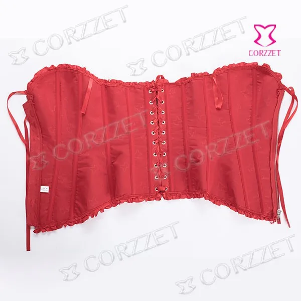 2550A White Black Red Jacquard Overbust Bustier Corset Top Corselet Zipper Korsett Women Corpete Gothic Corsets and Bustiers