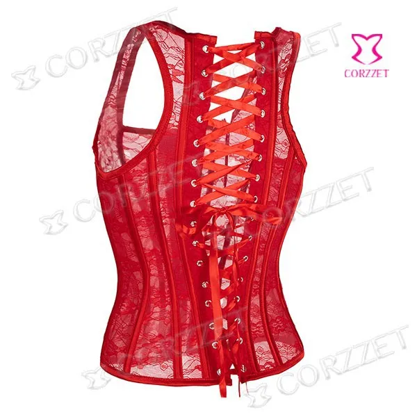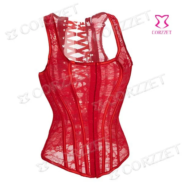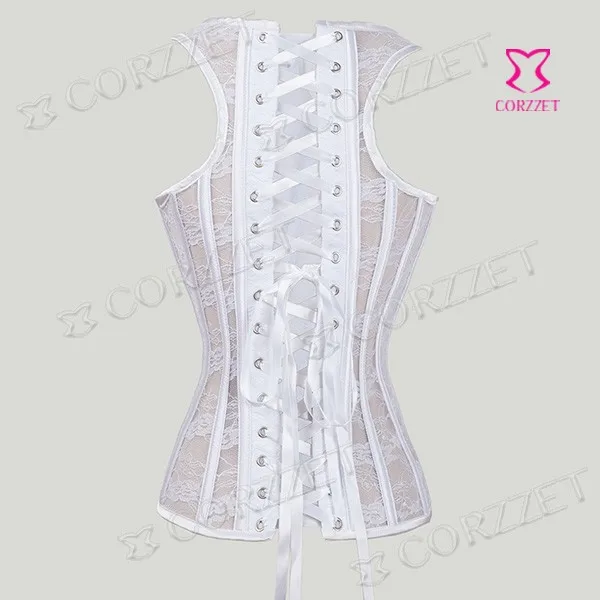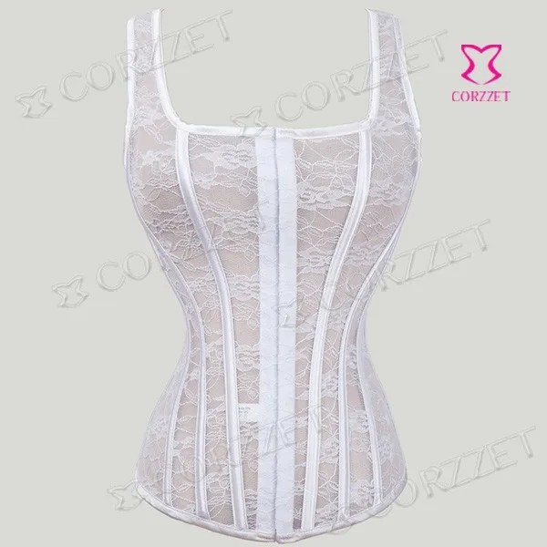 2927 Transparent Floral Lace Overbust White Corset with Straps Women Sexy Black Red Corsets et Bustiers Bridal Corselet Lingerie
