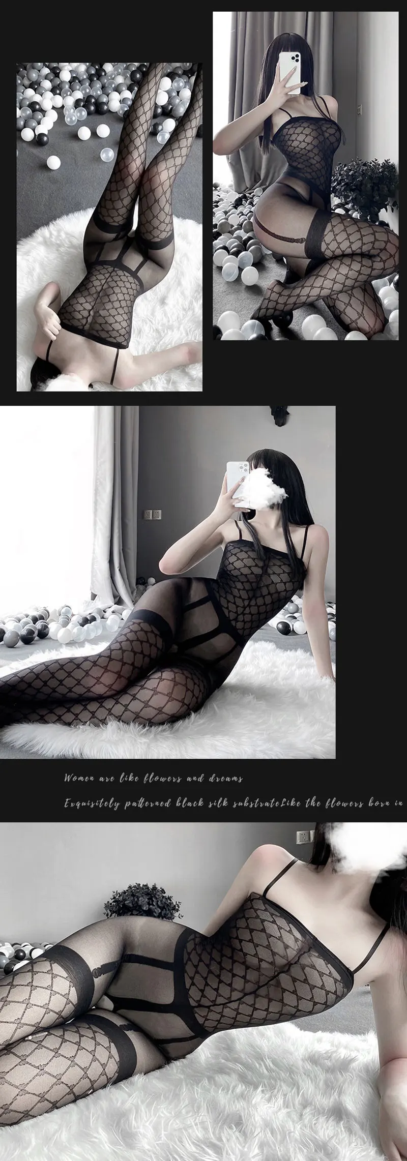 Sexy Mesh Elasticity Bodysuit For Women Sex Costumes Open Crotch Fishnet Stocking Erotic Lingerie Underwear Baby Doll Dress New
