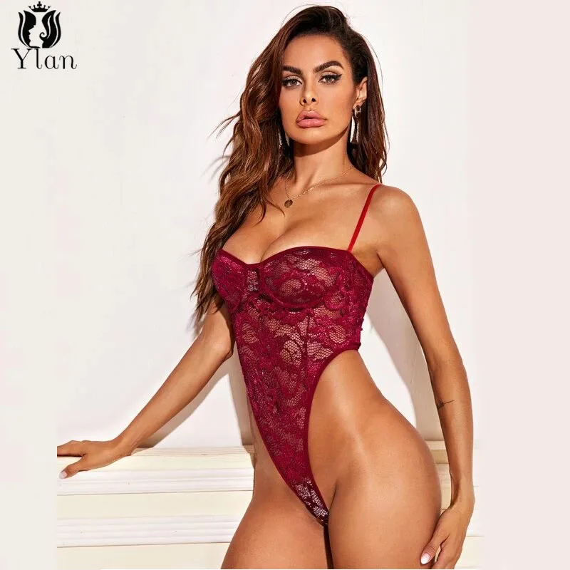 Women’s Sexy Lingerie Bodysuit Floral Lace Erotic Costumes Three-Point Underwear Backless Transparent Jumpsuit American Clothing